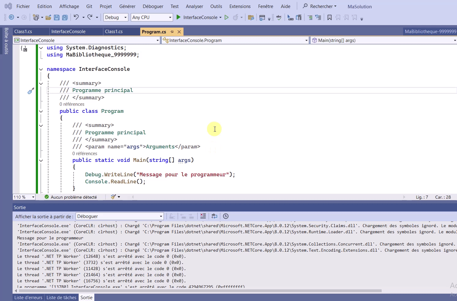 Module3 - Debug.WriteLine Utilisation de Debug.WriteLine Activer la fenêtre de sortie Je vous recommande de la mettre avec vos espions Toutes les fenêtres d'aide à l'exécution sont disponibles dans le menu Déboggage -> Fenêtres.